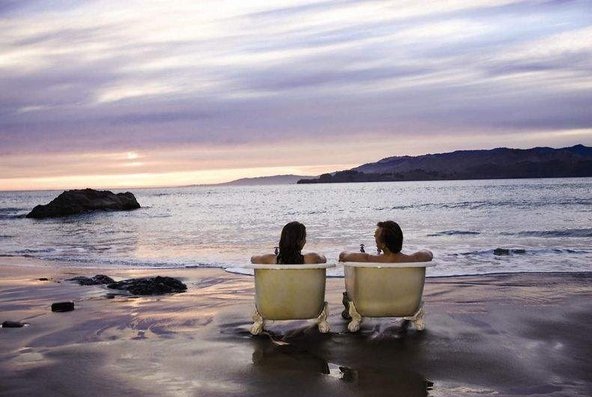 But, they all end the same way, the cut away at the end of the commercial finds the couple in some exotic location, one that almost impossibly has access to plumbing. Apparently you can run both hot and cold water as well as Schedule 40 PVC waste lines to the edge of the ocean or to the middle of a rolling field. After all, it would be pretty absurd if the tubs are empty, right?